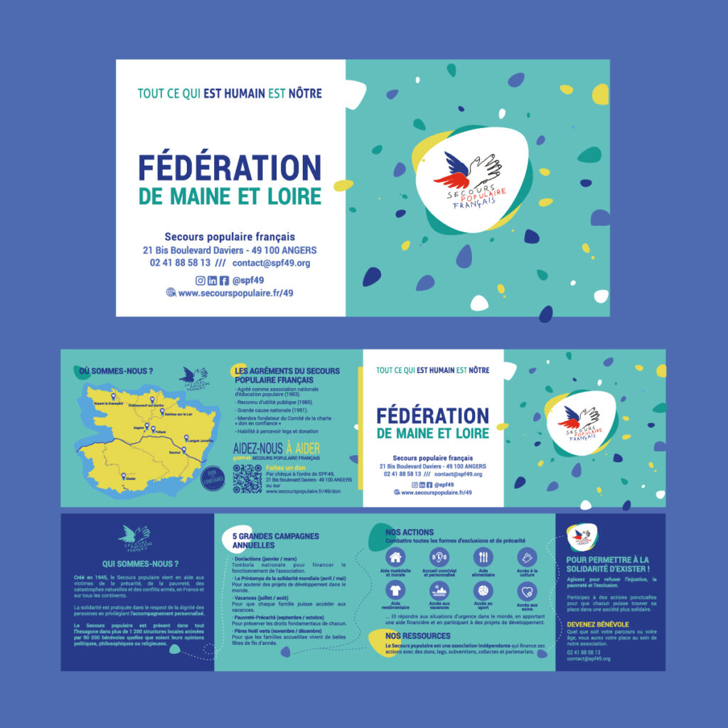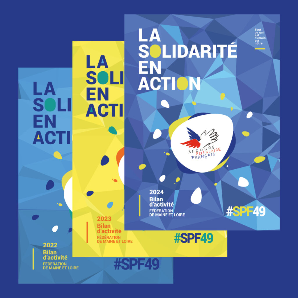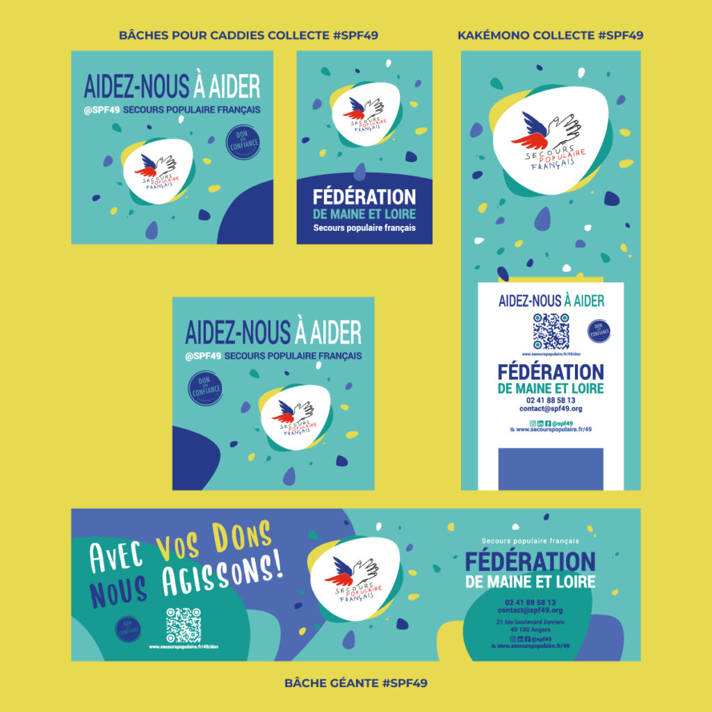 L’aventure continue avec la fédération 49 du Secours populaire français de Maine et Loire. Beaucoup de travaux ont été réalisés durant ces 3 dernières années avec entre autres : plaquette, cartes de vœux, bâches pour caddies & kakémonos pour les collectes, bâche géante pour lieu d’exposition, bilan d’activités annuels, cartes de visites pour les nouveaux venus, bilan numériques intermédiaires …